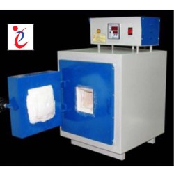 Rectangular electric furnace with light weight and fast heating system, the body is constructed out of Mild steel sheet duly powder coated / Epoxy painted in beautiful attractive clours. With maximum temperature of 900˚C and working temperature of 600˚C,with ceramic wool insulation, controlled by digital temperature controller cum indicator, and suitable thermocouple.